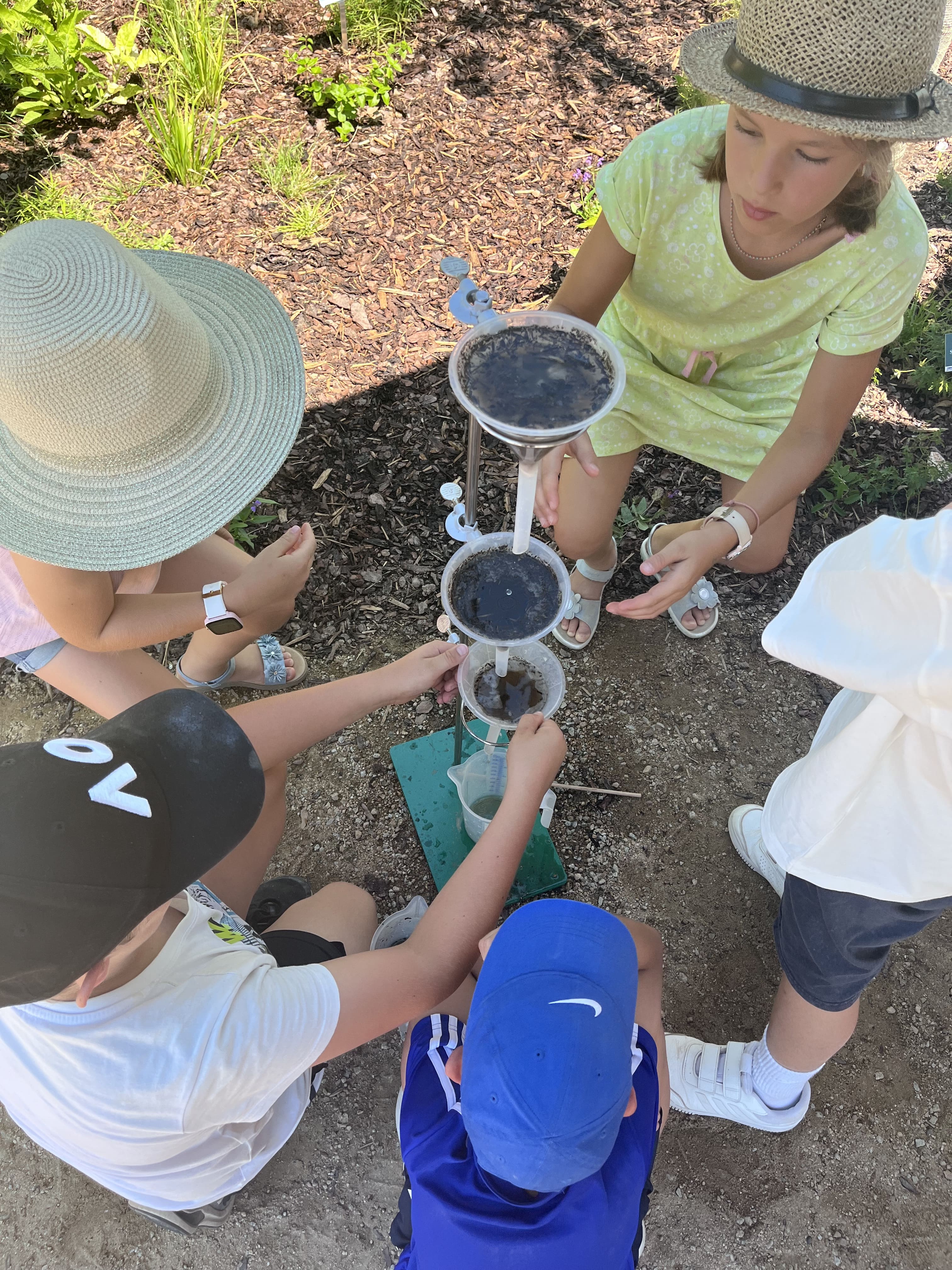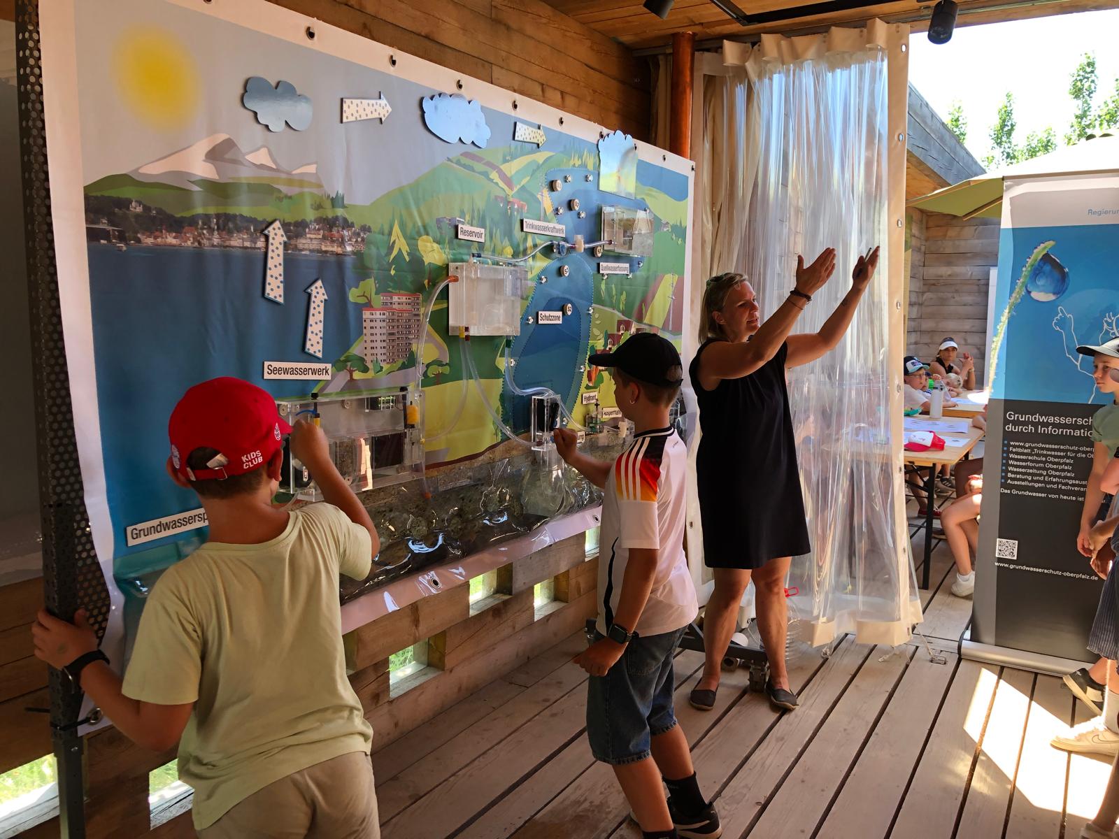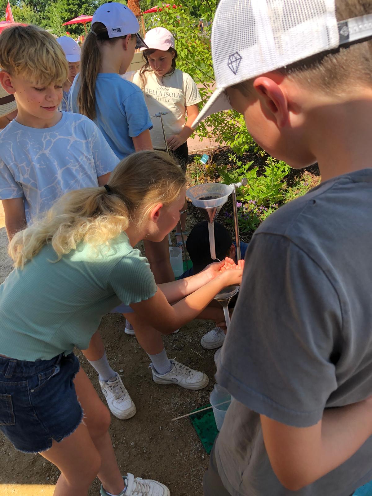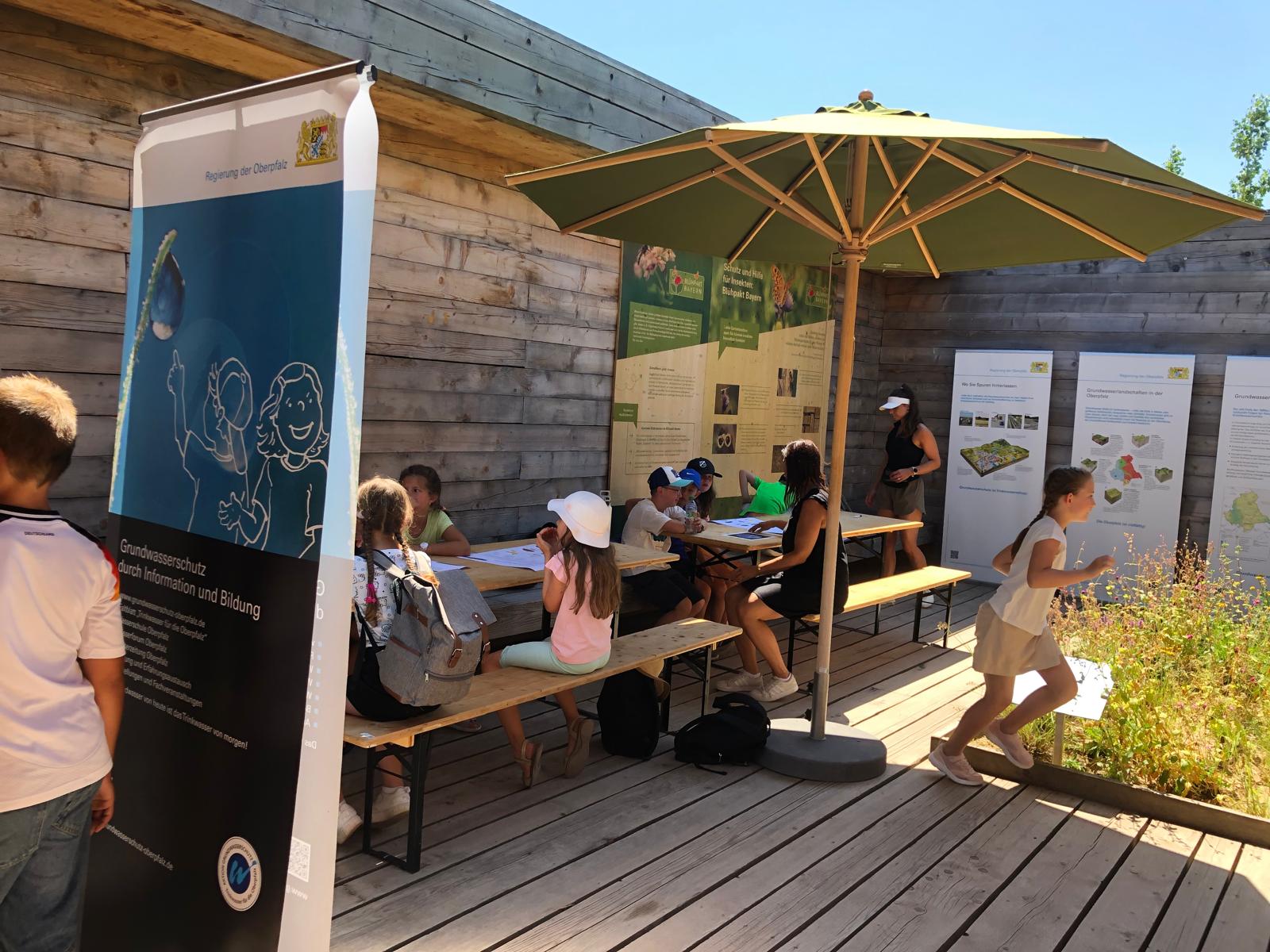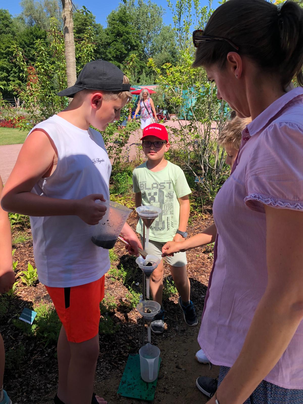 Im Rahmen der Initiative „Schule im Grünen“ nahmen die Schülerinnen und Schüler außerdem an der Veranstaltung „Wasserschule der Aktion Grundwasserschutz Oberpfalz“ teil. Dabei erforschten sie bei einem Workshop an drei Stationen das Filtern von Schmutzwasser durch Erde, Kies und feinen Sand, den Wasserkreislauf sowie die Wasserversorgung – vom Ursprung in der Quelle oder dem Brunnen bis zum Wasserhahn und den Wasserverbrauch.
