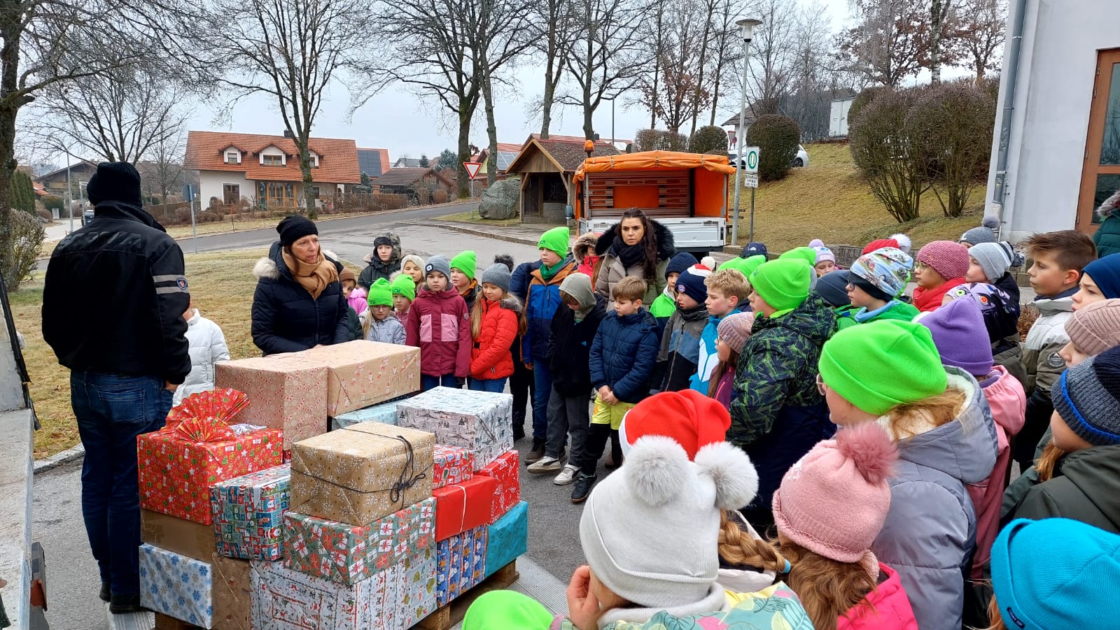 Die Weihnachtstrucker kamen, wie jedes Jahr kurz vor dem Fest, an der Schule vorbei, um die Päckchen, die die Kinder mit ihren Eltern vorbereitet hatten, abzuholen. Diesmal wurden damit auch Familien aus Albanien beschenkt. Ein großes Dankeschön den großzügigen Spendern, vor allem aber den Fahrern!
