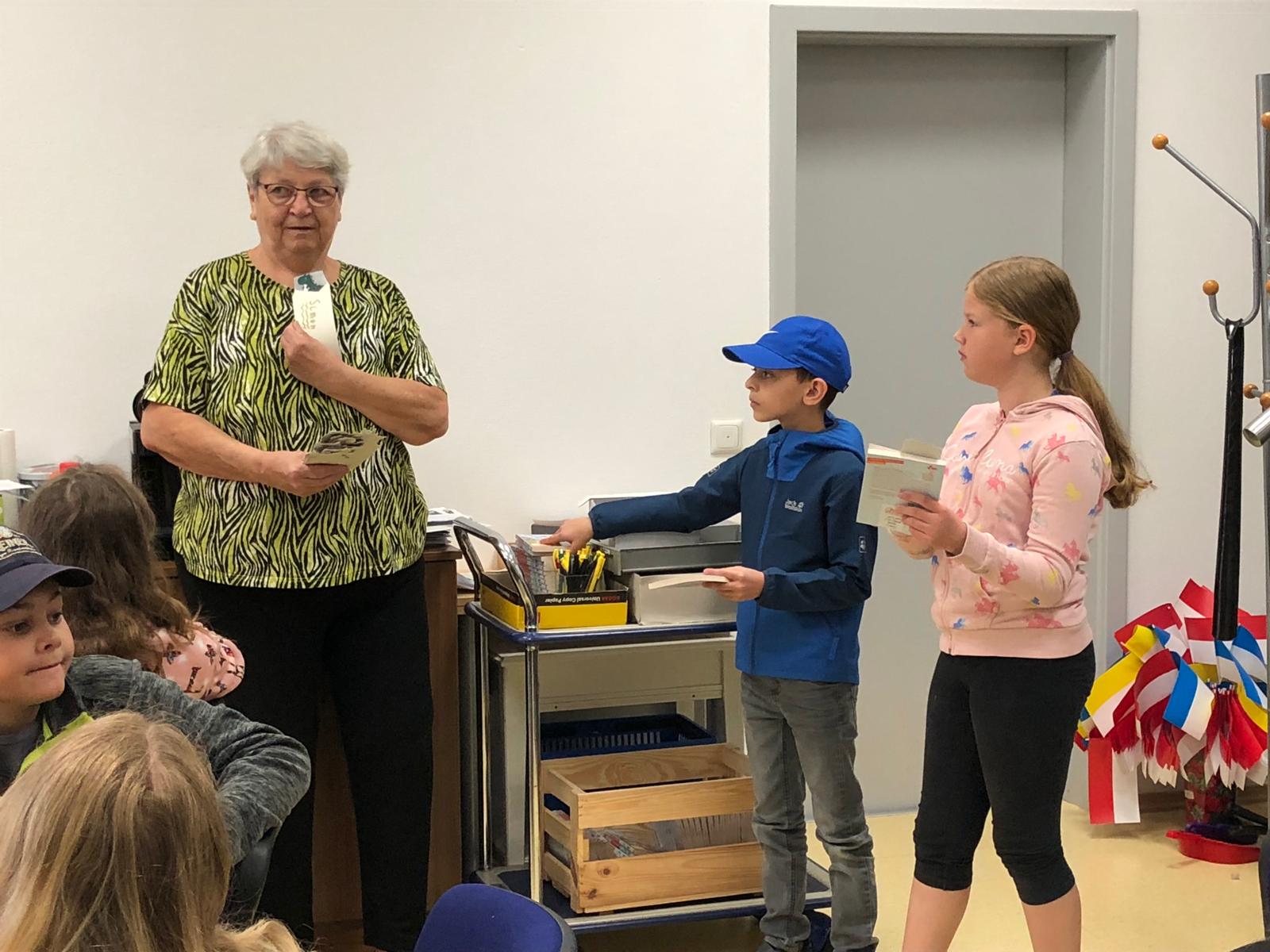 Die Klassenlehrerin der 4. Klasse Michaela Frey überreichte ihren Schülerinnen und Schülern ein kleines Geschenk und wünschte ihnen viel Glück und Erfolg auf ihrem weiteren Lebensweg.