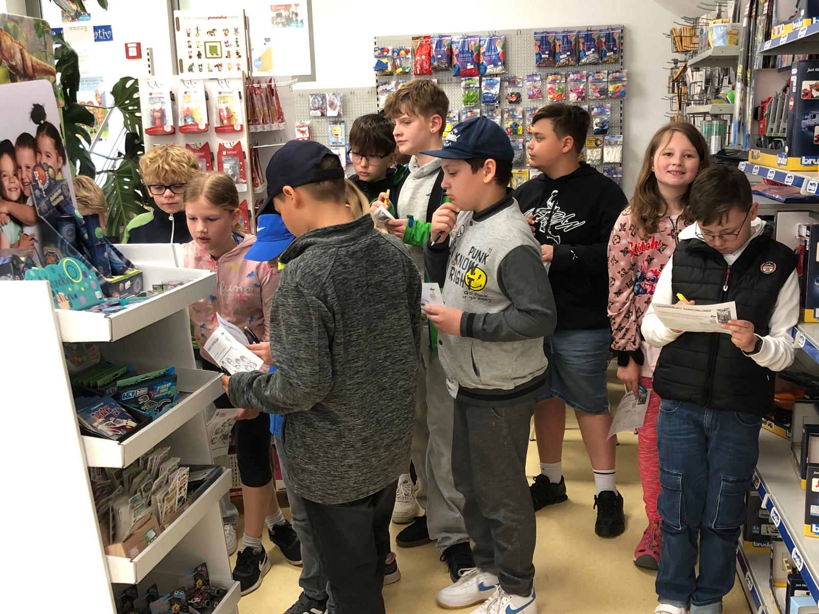 Während unseres Besuchs konnten die Viertklässler kreative Lesezeichen basteln und am spannenden Quiz zum Buchinhalt teilnehmen, das wie eine Schnitzeljagd durch das ganze Geschäft verlief. Am Ende erhielt jedes Kind von der Inhaberin persönlich ein Exemplar des Buches überreicht – ein unvergessliches Erlebnis für alle!